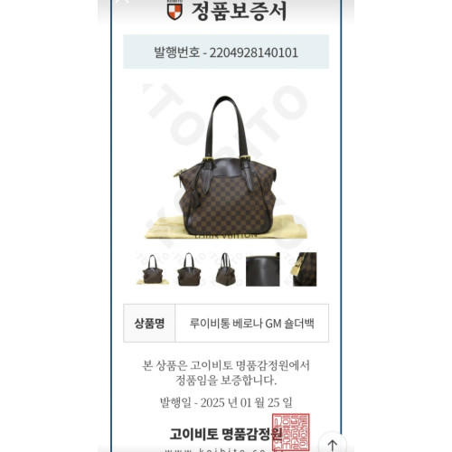 루이비통 다미에 캔버스 베로나GM 숄더 토트백