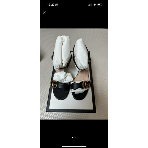 구찌 마몬트 레더 미드힐 샌들 36+